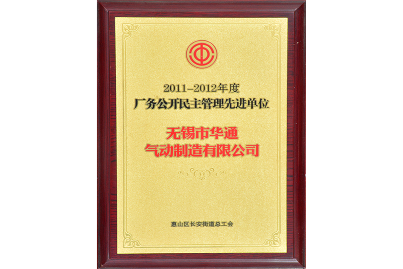 公司在发展过程中先后被认定为“江苏省智能制造示范车间”和“高新技术企业”。华通气动企业商号被评为“高技能人才培养优秀单位”。